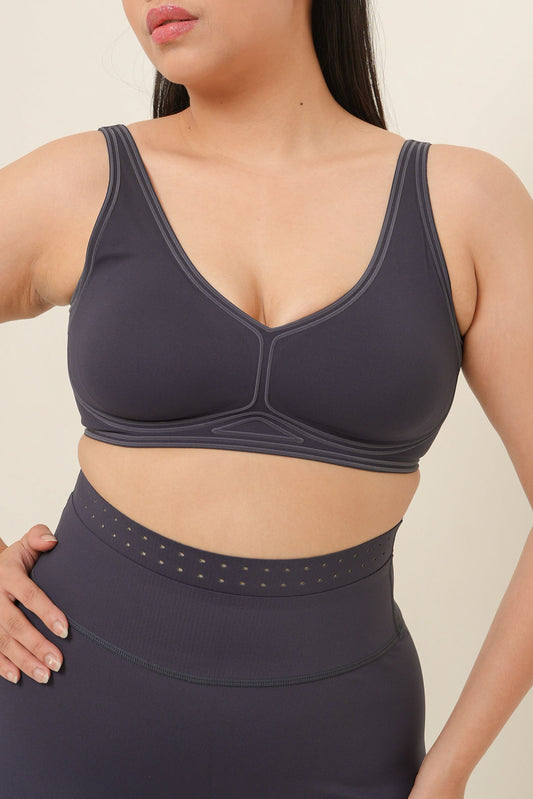 Sculpting Line Comfort Sports V Neck Training 2 in 1 Set - Puce & Black